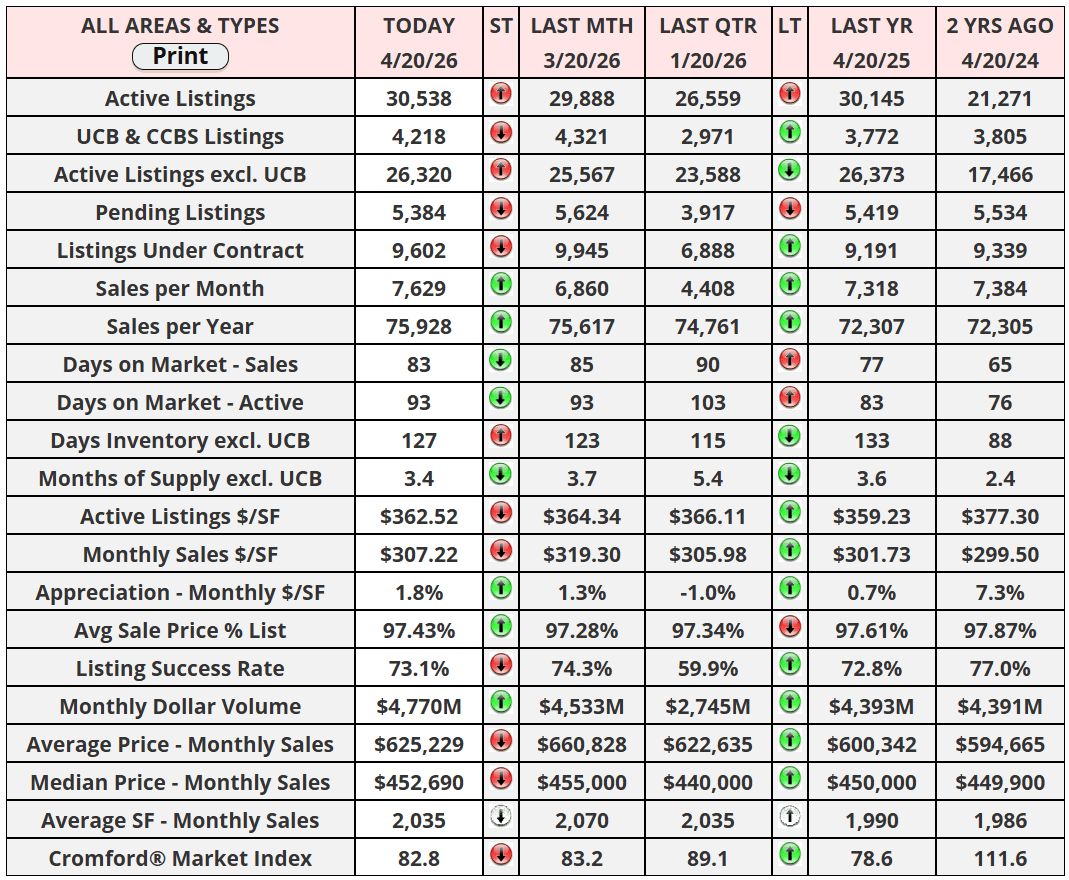What to watch this week: the 30-year fixed mortgage rate dropped to 6.23% on April 20, the lowest reading in five weeks, as the 10-year Treasury yield fell to 4.26%. Five national lenders are now advertising APRs below 6%. At the same time, the U.S. seized an Iranian-flagged cargo ship in the Gulf of Oman, sending oil prices sharply higher and putting the fragile ceasefire (set to expire Wednesday April 22) at real risk. CPI hit a three-year high driven by war-related oil pressure. The Fed meets April 28-29 with most observers expecting no change. Locally the story remains steady: prices holding, supply stable, volume strong. Pick your price point and know your neighborhood, because the averages hide as much as they reveal. Have a great week, everyone!