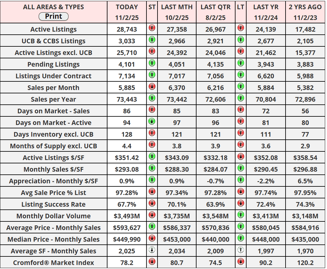 The latest S&P / Case-Shiller® Home Price Index® was just released, offering insight into home sales data from June to August 2025. It’s important to note that this information lags the current market significantly; the average closing occurred in mid-July, more than three months ago. Still, the report provides a helpful snapshot of price trends across major U.S. cities. Only one metro in Chicago showed a month-over-month price increase, while the remaining 19 markets declined. The strongest price performance came from cities in the North and Northeast, while the South and West broadly continued to show price weakness.
