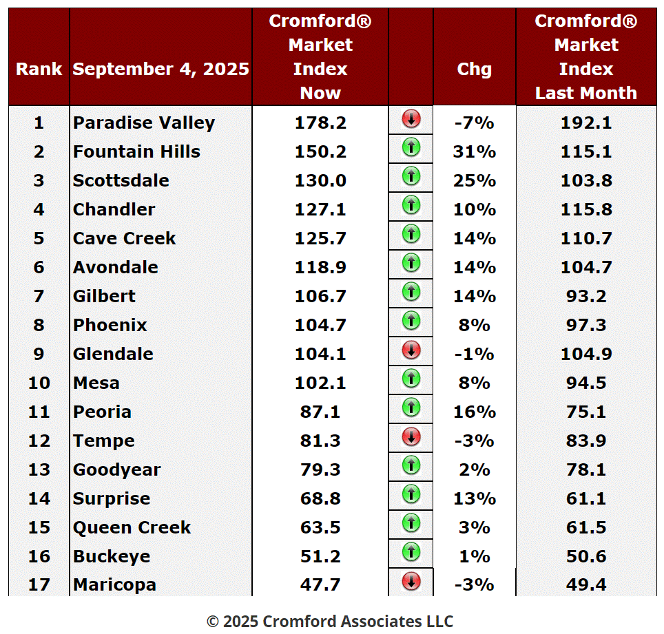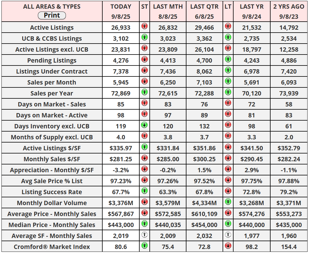 When compared to the same time last year, this listing rate reflects a 6.4% increase. Even more impressive, it's up 29% from September 2023. While still shy of the spring 2025 surge, when weekly new listings hit between 2,600 and 2,800, this increase may be enough to reverse the recent decline in the Cromford® Supply Index. If this pace holds, it could stabilize or even shift the market dynamic.