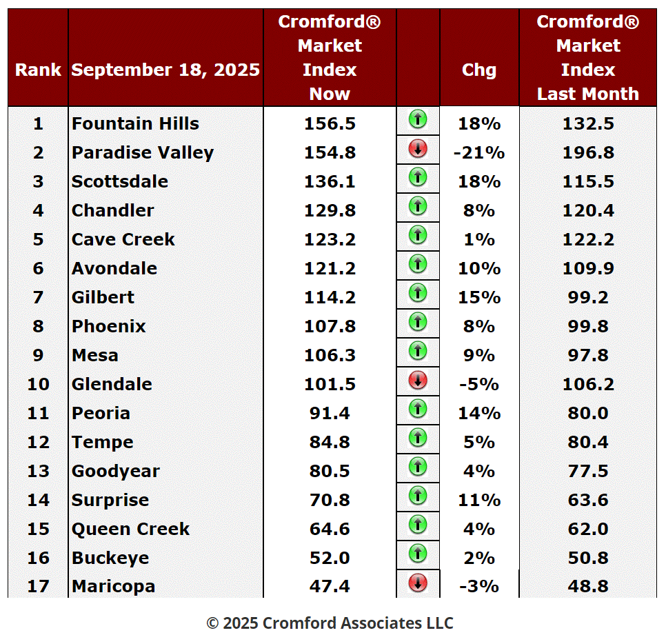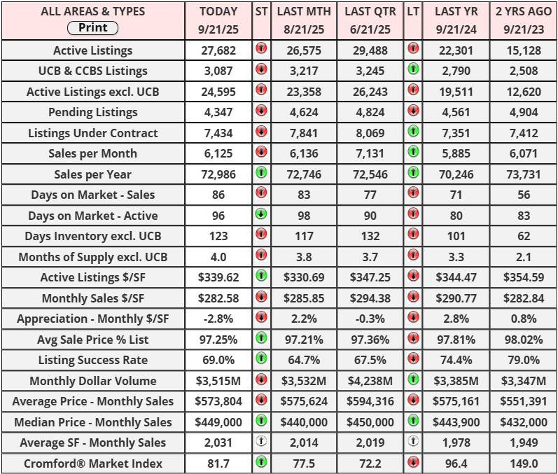 On the supply side, the story is changing as well. New listings are arriving steadily, reversing the previous downward trend in inventory. The Cromford® Supply Index, which had been falling, has now flattened and is beginning to turn upward. This trend is expected to continue for at least the next two months, providing more choices for buyers and perhaps adding a bit more balance to an evolving market landscape.