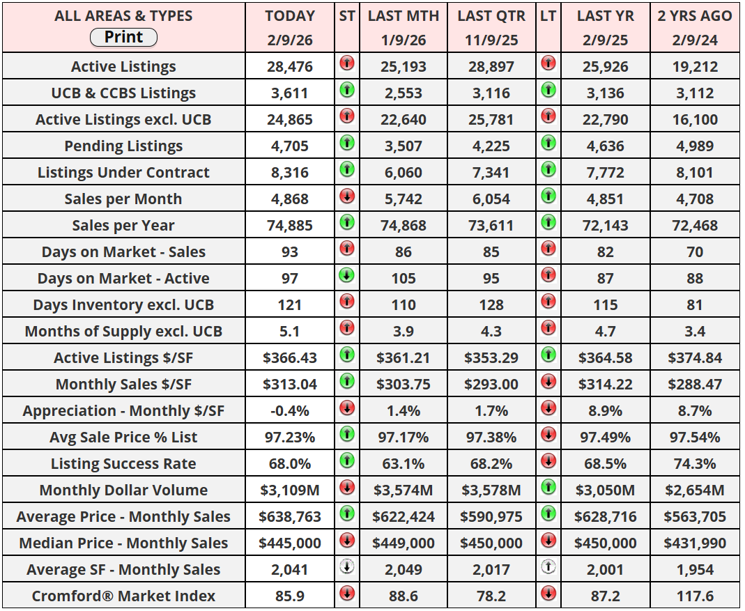 When limiting the analysis to single-family homes only, the pattern becomes even clearer. The Northeast Valley shows an 18 percent increase in median pricing since 2022, far exceeding any other region. All remaining areas continue to post declines, though generally smaller than when condos and townhomes are included. The data confirms that the luxury-heavy Northeast Valley has consistently favored sellers, while most other parts of the Valley remain in a much more challenging pricing environment.