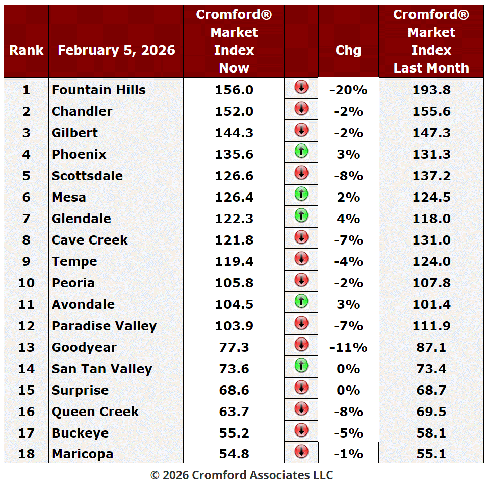 Adjusting for inflation makes the contrast even more pronounced. The purchasing power of the dollar has declined by roughly 11 percent since 2022, meaning that real price gains in the Northeast Valley are modest after inflation. In contrast, homes in other regions are significantly cheaper in real terms, with effective price declines reaching as much as 25 percent in Pinal County. This reinforces the idea that pricing strength has been isolated to higher-end segments rather than broadly distributed across the market.